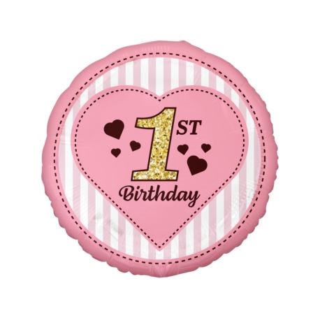 Balon foliowy okrągły cyfra 1 na roczek dziewczynki