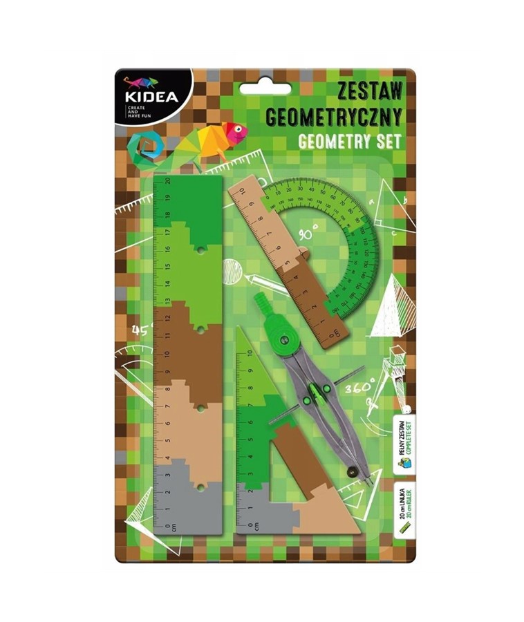 Ten geometryczny zestaw z kolekcji inspirowanej światem Minecrafta to świetna propozycja dla każdego fana gry! Utrzymany w charakterystycznych odcieniach zieleni i brązu, przyciąga wzrok i sprawia, że codzienne lekcje matematyki nabierają nowego wymiaru.